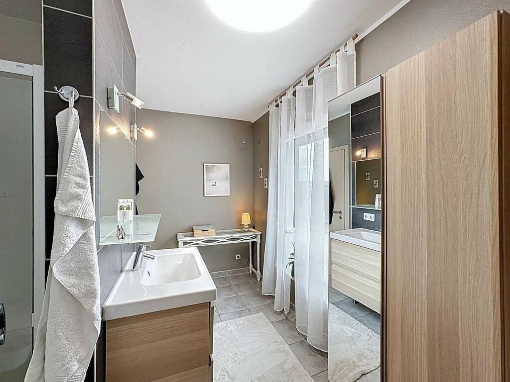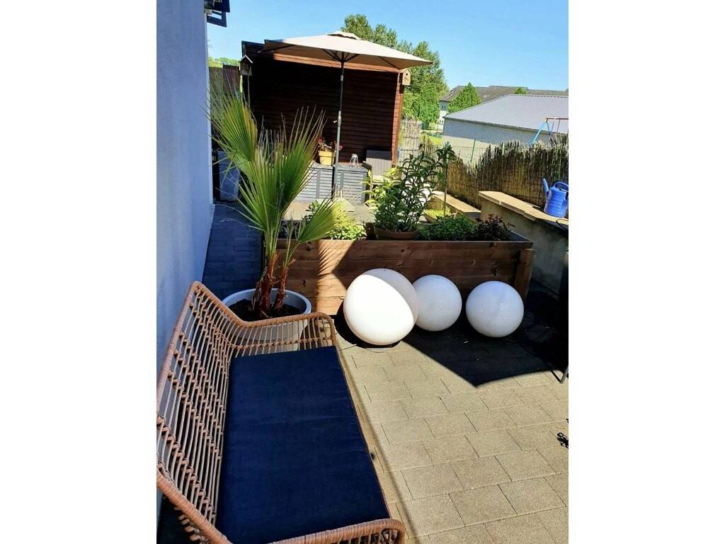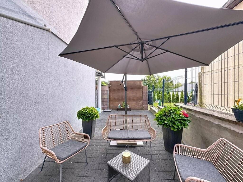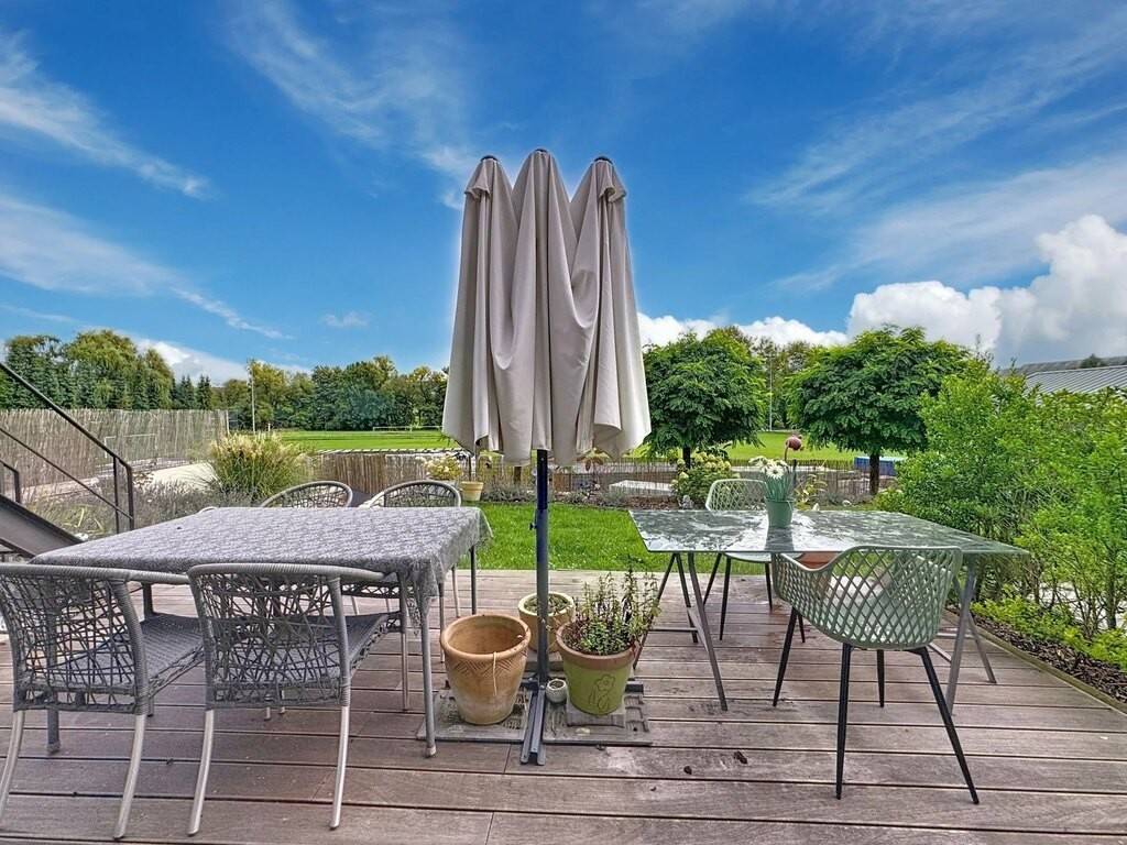 Main features : Land: 4.21 ares Total surface area: ± 264 m² Apartment-duplex: 125.59 m² living space + garden + 2 terraces + garden chalet with sauna Separate study: 62.52 m² + terrace Garage for 1 car (automatic door) 3 outdoor parking spaces Large storage space under garage Fully fenced garden (1.60 m)