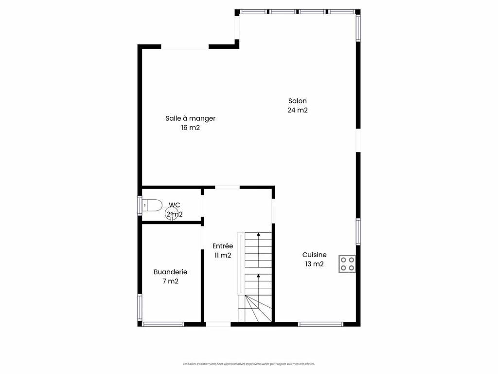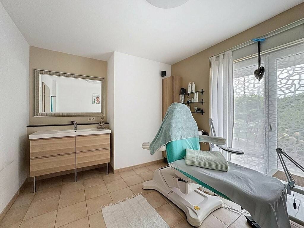 Ground floor : Entrance hall Living room with access to terrace Dining room Fully equipped kitchen Study Separate WC Garage for 1 car Laundry room Direct access to garden Several outdoor parking spaces