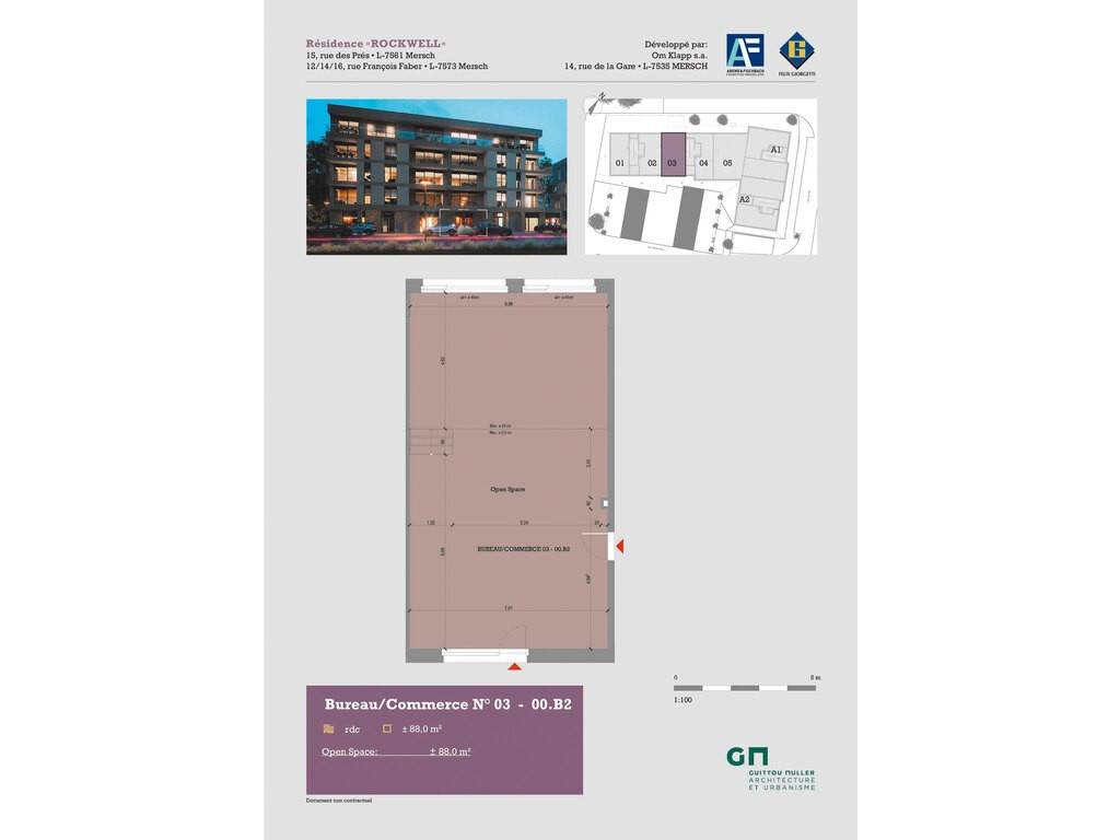 La résidence «Rockwell» se situe à Mersch, 18, rue des Prés et 12/14/16, rue François Faber. Elle sera implantée sur un terrain de ca. 24,45 ares.