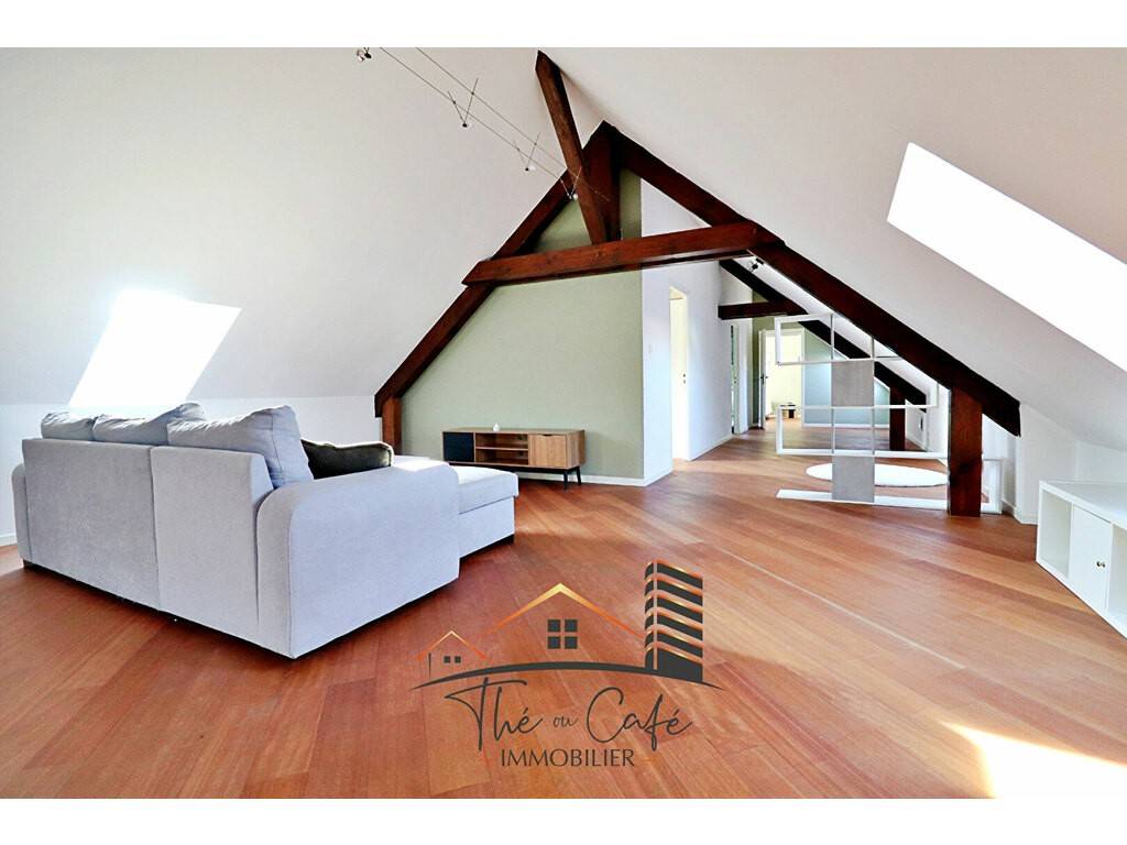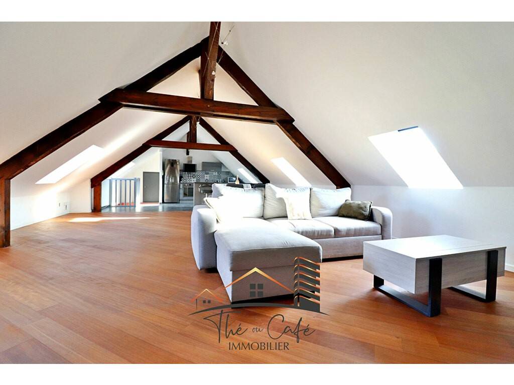 Ce grand combles à l'esprit loft offre une surface au sol de 143 m2 (superficie Carrez de 74.93 et superficie habitable de 133.11m2). L'accès se fait par une entrée indépendante en partie basse. Après quelques marches, laissez-vous surprendre par un magnifique plateau aménagé avec beaucoup de goût, des volumes généreux baignés de lumière.