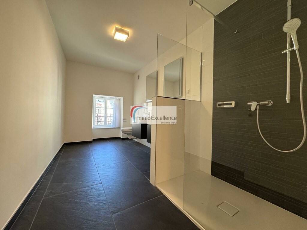 RESERVED! IMMO EXCELLENCE offers this superb, bright apartment with approximately 119 m² of living space, located on the second floor of a residence ideally situated in the center of Echternach. The apartment comprises: a spacious entrance hall (11.36 m²), a beautiful and modern fully equipped kitchen (9.57 m²), a large, bright double living room (54.96 m²), two bedrooms (18.18 m² and 12.47 m²), a large shower room (10.11 m²), a separate WC (1.86 m²), and a private cellar (6.25 m²). This apartment impresses with its exceptional brightness and breathtaking views of the famous Market Square. Its location is ideal: in the immediate vicinity of all amenities (schools, nurseries, supermarkets, pharmacy, restaurants, etc.). Minimum lease term: 2 years. Don't miss out! Echternach is a charming Luxembourgish town of approximately 5,700 inhabitants, the capital of its canton, located along the Sûre Valley, on the border with Germany. It is renowned for its abbey and its famous dancing procession. Echternach is only 30 minutes from Luxembourg City centre. IMMO EXCELLENCE offers you this beautiful, light-filled apartment with a living area of approximately... 119 m², large, spacious stock and ideal location for the Zentrum von Echternach, the same residence. a large room and bathroom (54.96 m²), a bathroom (18.18 m² and 12.47 m²), a large shower room (10.11 m²), a separate WC (1.86 m²), and a private bathroom (6.25 m²). m²).