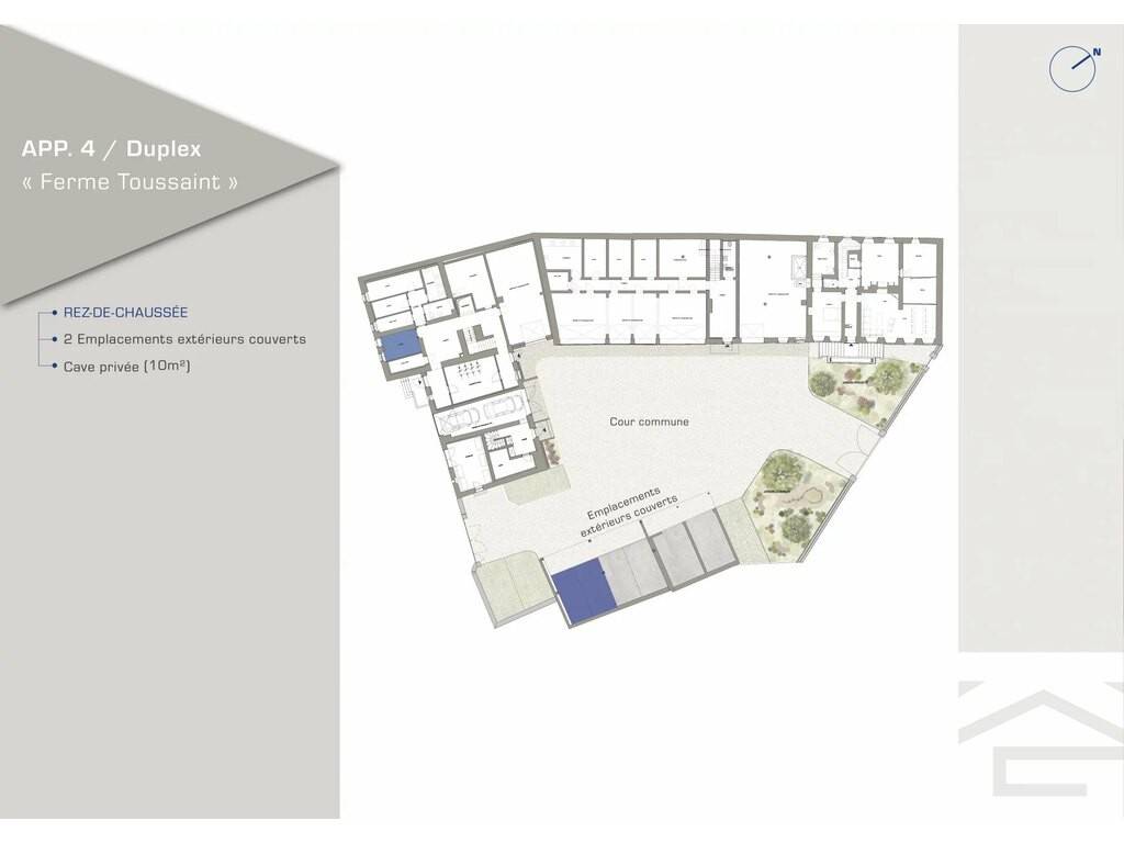 Access to a technical room, a shared laundry room and a shared room for bycicles