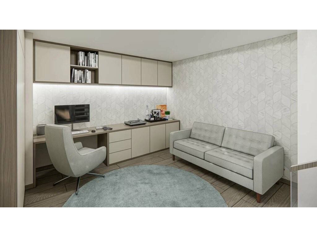 Layout: First floor: Entrance hall, separate toilet, office, storage room, kitchen/dining room, living room. Second floor: Lounge, 2 bedrooms and a bathroom