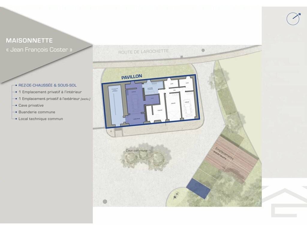 1 private indoor pitch. Private cellar. Access to a shared utility room and laundry room. 1 private outdoor parking space (excluded).