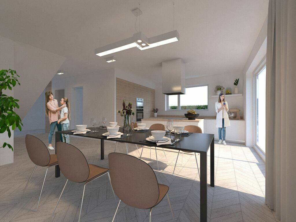 Built with Thermoplan-Poroton S7.5 insulated clay blocks, wall thickness 42.5 cm, ensuring excellent energy performance.