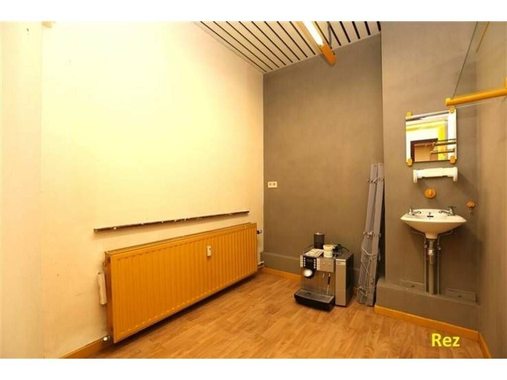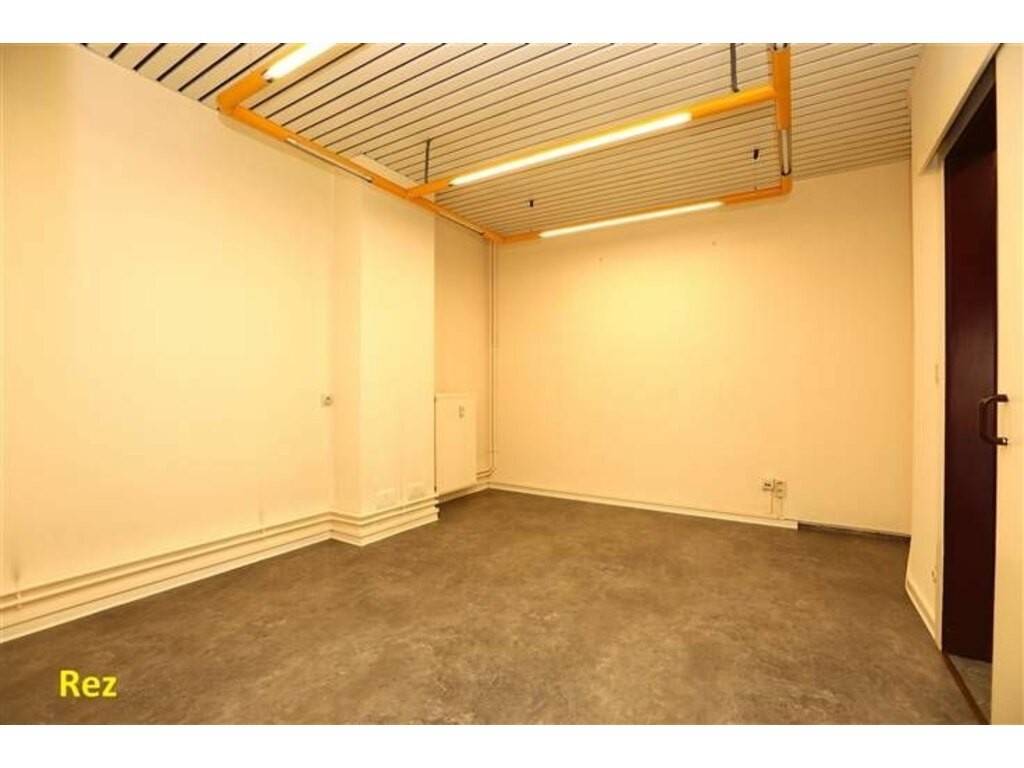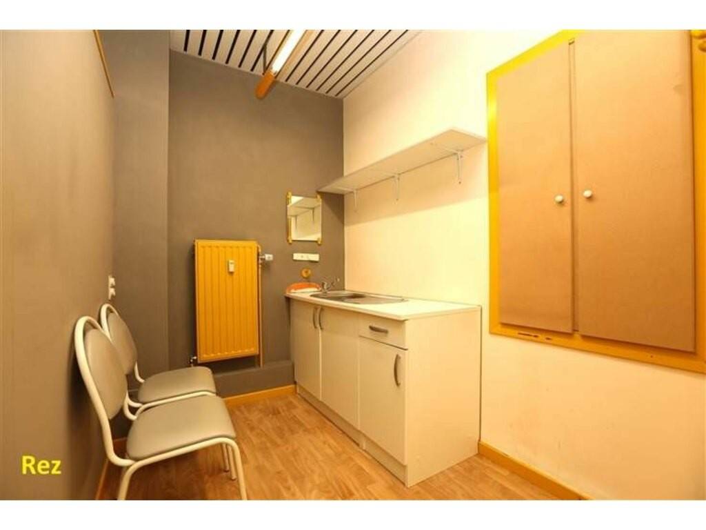 Le rez commercial se compose de 3 bureaux de 12.50-14 et 20 m², un hall/couloir de 10 m², une kitchenette de 5 m², 2 réserves de 5.50 et 9 m², une cave de 8 m² et un wc.