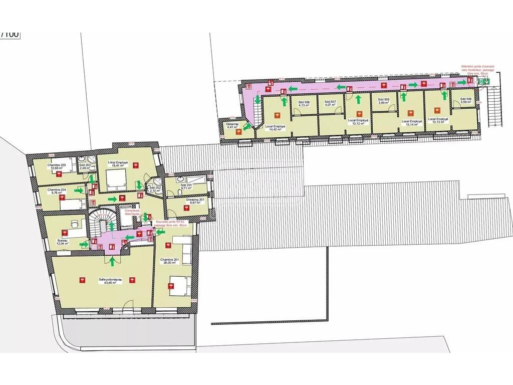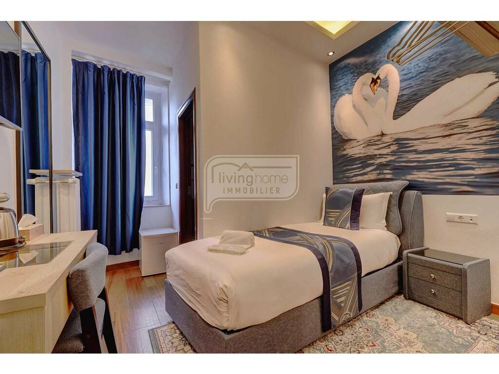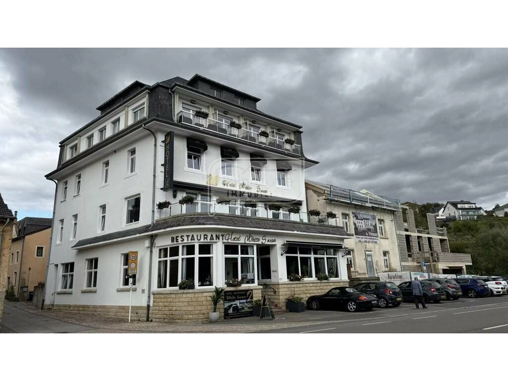 - changing room and restrooms (m) (8.43 m²) - Technical room (5.05 m²) (laundry room) - Storage area (13.81 m²) - Boiler room (8.47 m²) Viessmann boiler - Cold room (3.34 m²) - Beverage storage (16.29 m²) - 1ST FLOOR: - Hall with elevator and stairwell - Office (12.04 m²) - Breakfast room (43.48 m²), seating 24, equipped with a bar and refrigerator - Terrace seating 18, with panoramic views of the Moselle River - Studio/Suite 201 (26.00 m²) with a fitted kitchen (6.67 m²) and bathroom (6.71 m²) - Bedroom 202 (18.41 m²) with a bathroom Shower (2.12 m²) - Bedroom 203 (10.66 m²) with an en-suite shower room (2.48 m²) - Bedroom 204 (9.76 m²) Annex: - Hallway - Storage room (4.41 m²) - Bedroom 506 (14.42 m²) with an en-suite shower room (4.13 m²) - Bedroom 507 (13.12 m²) with an en-suite shower room (4.13 m²) - Bedroom 508 (13.14 m²) with an en-suite shower room (3.99 m²) - Bedroom 509 (13.13 m²) with an en-suite shower room (3.58 m²) These four bedrooms are ideal for staff accommodation! 2ND FLOOR: - Hall with elevator and stairwell Staircase - Storage room (1.07 m²) - Bedroom 301 (8.93 m²) with en-suite shower room (2.61 m²) - Bedroom 302 (13.13 m²) with en-suite shower room (2.44 m²) - Bedroom 303 (12.20 m²) with en-suite shower room (3.50 m²) - Bedroom 304 (13.52 m²) with en-suite shower room (3.15 m²) - Bedroom 305 (15.75 m²) with en-suite bathroom (5.12 m²) - Bedroom 306 (14.03 m²) with en-suite shower room (1.95 m²) - Shared shower room (3.42 m²) with terrace (5 m²) - Separate shared WC (1.24 m2) - Bedroom 307 (10.03 m2) - Bedroom 308 (14.02 m2) - Bedroom 309 (6.92 m2) 3RD FLOOR: - Hall with elevator and stairwell (12.65 m2) - Bedroom 401 (12.60 m2) with en-suite shower room (4.54 m2) - Bedroom 402 (18.51 m2) with en-suite shower room (3.34 m2) - Bedroom 403 (19.98 m2) with en-suite bathroom (6.15 m2) and terrace - Bedroom 405 (13.19 m2) with en-suite shower room (2.98 m2) and terrace - Bedroom 406 (13.00 m2) with Shower room (2.22 m²) and terrace; bedroom 407 (14.23 m²) with en-suite bathroom (3.87 m²) and terrace; bedroom 408 (17.61 m²) with en-suite shower room (3.65 m²); bedroom 409 (12.65 m²) with en-suite shower room (2.70 m²); 4TH FLOOR: Hall (6.16 m²) with elevator and stairwell; family bedroom 501 (20.70 m²) with en-suite shower room (3.19 m²), master bedroom, and a bedroom for 3 children (17.41 m²); family bedroom 502 (21.28 m²) with en-suite bathroom (3.91 m²), master bedroom, and a Bedroom for 1 child (7.36 m2) - Attic space 503 (48.44 m2) with the possibility of converting it into an additional bedroom. EXTERIOR: Terrace - Garden - 8 private parking spaces (behind the main building) - Public parking. TECHNICAL ASPECTS: Concrete construction - Concrete slab - Concrete stairs - Tiled floors - Sloping roof covered with natural slate - Insulated attic - Heating: gas (tank), radiators - Fire alarm - PVC double-glazed windows - Manual roller shutters - Elevator - Sanitary facilities renovated in 2018 - Professional kitchen. GEOGRAPHICAL LOCATION: Ehnen is a picturesque wine-growing village situated on the banks of the Moselle River, which marks the natural border with Germany. Wormeldange, in eastern Luxembourg, in the canton of Remich. Nestled between the river and vine-covered hillsides, it offers a verdant and hilly natural setting, much appreciated by walkers and wine lovers. The town is best known for: - its circular church, unique in the Grand Duchy, in the heart of a charming medieval center with narrow streets and winemakers' houses, - its Wine Museum, housed in a former 18th-century winemaker's residence, showcasing the region's winemaking tradition. Thanks to its vineyard paths and panoramic views of the valley, Ehnen is considered a "picturesque gem" of the Luxembourg Moselle, highly sought after for tourism, walking, and wine tasting. DISTANCES: - Wormeldange 2 km - Remich 10 km Grevenmacher at 11 km