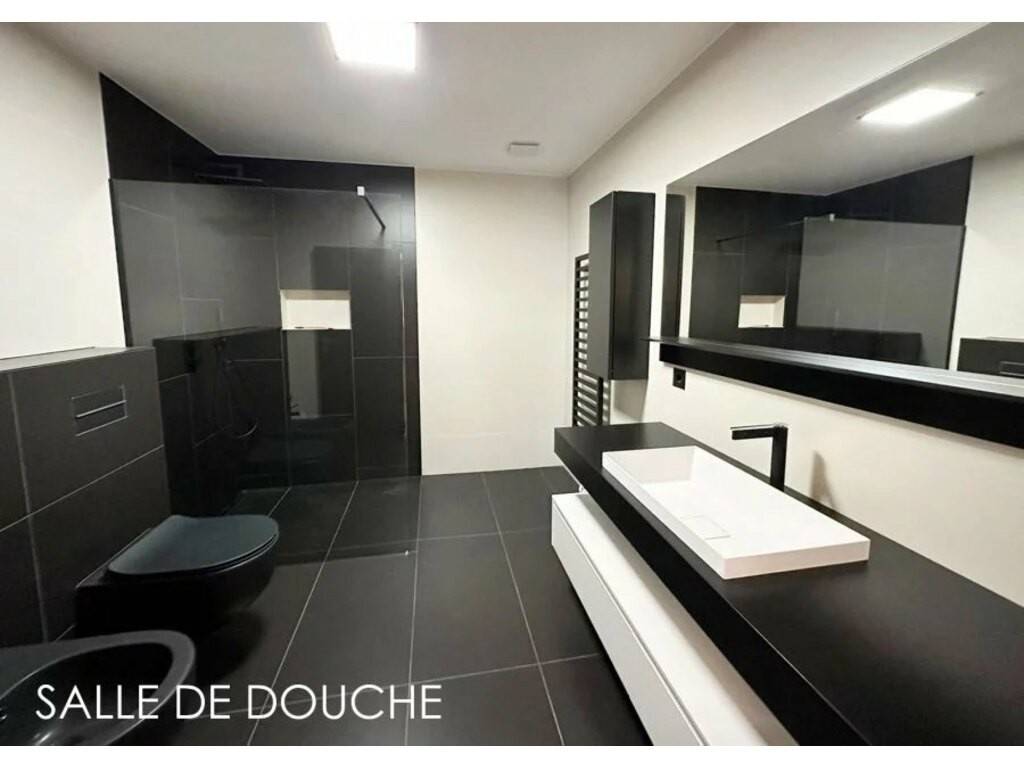 La surface habitable est de 104m2, avec deux terrasses de plus de 40m2 et un jardin de plus de 3 ares.