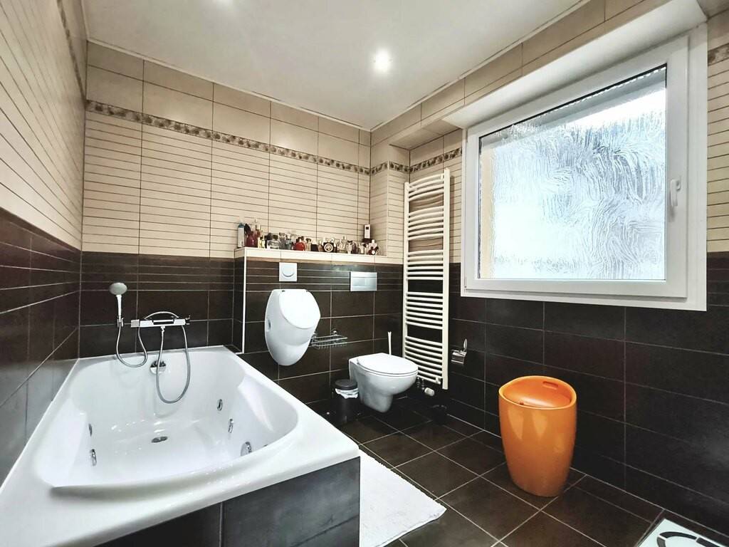 Master suite with small dressing room, large spa bathroom (hydromassage tub + urinal) and two additional bedrooms.