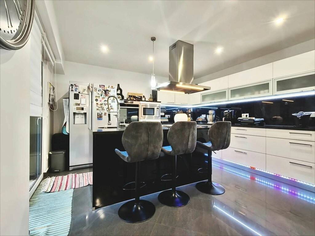Fully equipped kitchen with direct access to the 60 m² terrace, large dining room opening onto a warm living room with fireplace - bright, convivial living spaces.