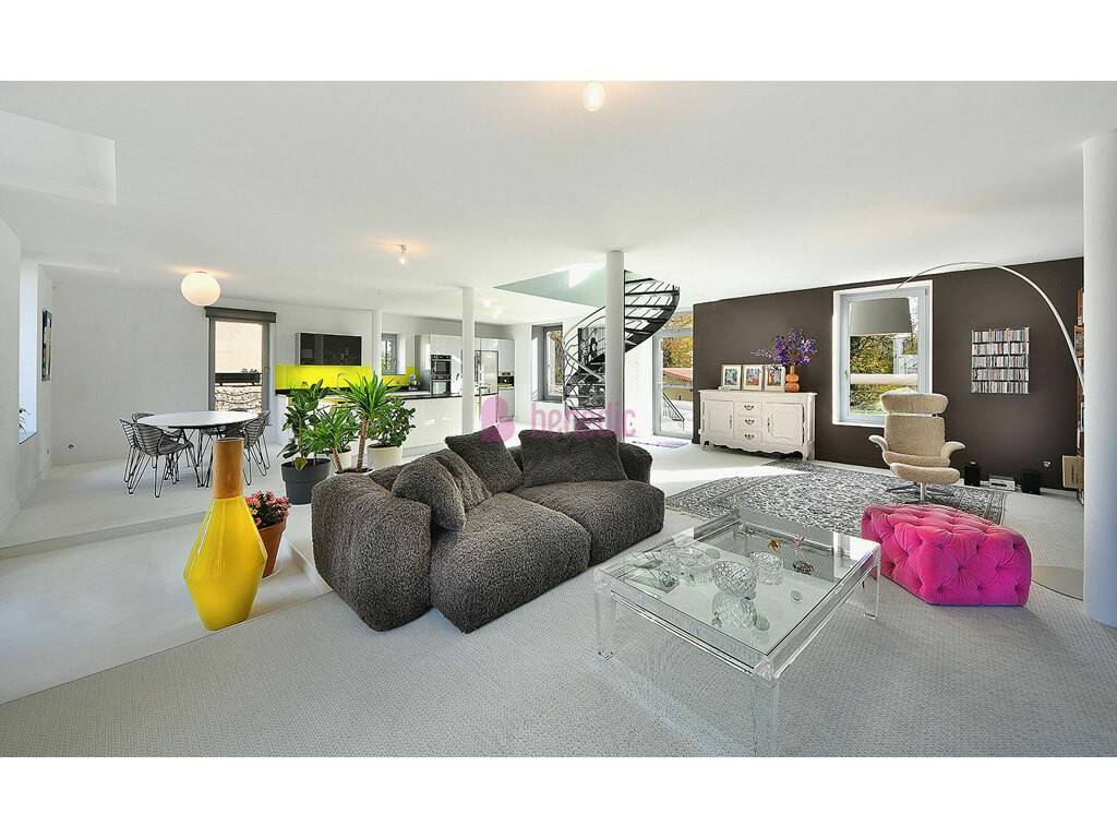 * Superbe cuisine-séjour de 95 m², baignée de lumière, avec cuisine Pedini équipée, plan de travail en granit et sol en Bolon