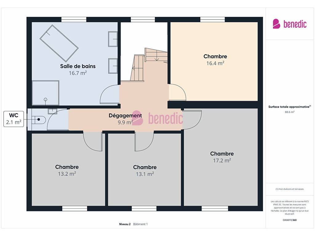 * 4 chambres aux surfaces confortables