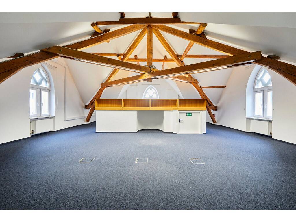 The property also benefits from a private garden of approximately 600 sqm and 22 outdoor parking spaces. Additional features include a lift, dedicated archive rooms and a safe, meeting current standards for comfort, security and operational efficiency.