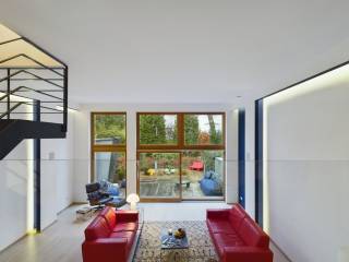 - Un séjour spectaculaire de 90 m² réparti sur deux demi-niveaux: