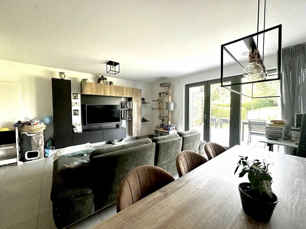 - Entrance hall - 35m² living and dining room with access to the garden - Semi-separate, fully-equipped corner kitchen - 1 Bathroom with shower and WC - Night hall - 1 separate WC - 2 bedrooms (17m² and 18m² with dressing room) - Shared laundry room - Large cellar - 2 indoor parking spaces