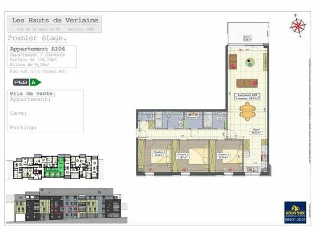 Vous êtes à la recherche d’un bien pour occupation personnelle ou d'un investissement ? N’attendez plus, et venez découvrir notre nouvelle résidence « Les Hauts de Verlaine » à Bertrix, composée de 22 appartements, 2 commerces, ainsi que des parkings intérieurs, carports et caves,.... Idéalement situé le long de la rue de la Gare, ce magnifique immeuble dont l’architecture a été étudiée minutieusement, les appartements y sont lumineux, spacieux et confortables, a tout pour vous plaire. Tous les appartements bénéficient d’un PEB A, grâce à une isolation thermique supérieure. Chauffage sol alimenté par une chaudière collective au gaz, et système solaire thermique combiné pour augmenter le gain d'énergie. De plus, vous réduirez rigoureusement votre consommation commune d’électricité grâce aux panneaux photovoltaïques qui sont placés en toiture. Dans le but de réduire le dépôt de calcaire, un adoucisseur collectif d'eau est installé. Chaque bien est muni d’une terrasse ou d’un balcon disposant d'une orientation optimale, de quoi égayer vos belles soirées d’été. Les appartements situés au rez-de-chaussée, disposent d'un jardin à usage privatif. Afin d’accroitre la sécurité de leurs occupants, les appartements du rez-de-chaussée sont munis d’une détection anti-intrusion. Chaque appartement est desservi par l'ascenseur.