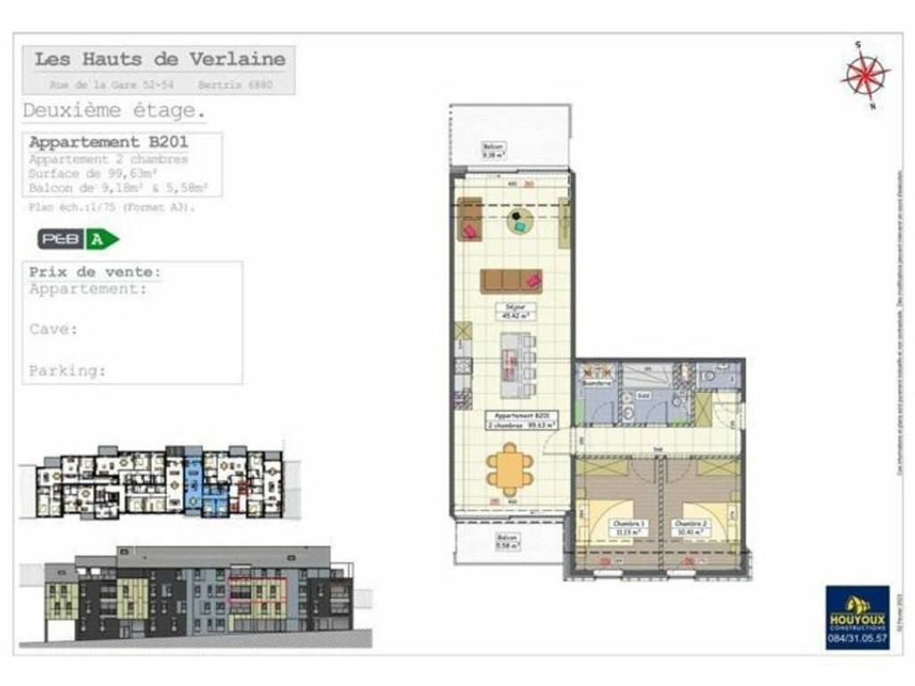 Vous êtes à la recherche d’un bien pour occupation personnelle ou d'un investissement ? N’attendez plus, et venez découvrir notre nouvelle résidence « Les Hauts de Verlaine » à Bertrix, composée de 22 appartements, 2 commerces, ainsi que des parkings intérieurs, carports et caves,.... Idéalement situé le long de la rue de la Gare, ce magnifique immeuble dont l’architecture a été étudiée minutieusement, les appartements y sont lumineux, spacieux et confortables, a tout pour vous plaire. Tous les appartements bénéficient d’un PEB A, grâce à une isolation thermique supérieure. Chauffage sol alimenté par une chaudière collective au gaz, et système solaire thermique combiné pour augmenter le gain d'énergie. De plus, vous réduirez rigoureusement votre consommation commune d’électricité grâce aux panneaux photovoltaïques qui sont placés en toiture. Dans le but de réduire le dépôt de calcaire, un adoucisseur collectif d'eau est installé. Chaque bien est muni d’une terrasse ou d’un balcon disposant d'une orientation optimale, de quoi égayer vos belles soirées d’été. Les appartements situés au rez-de-chaussée, disposent d'un jardin à usage privatif. Afin d’accroitre la sécurité de leurs occupants, les appartements du rez-de-chaussée sont munis d’une détection anti-intrusion. Chaque appartement est desservi par l'ascenseur.