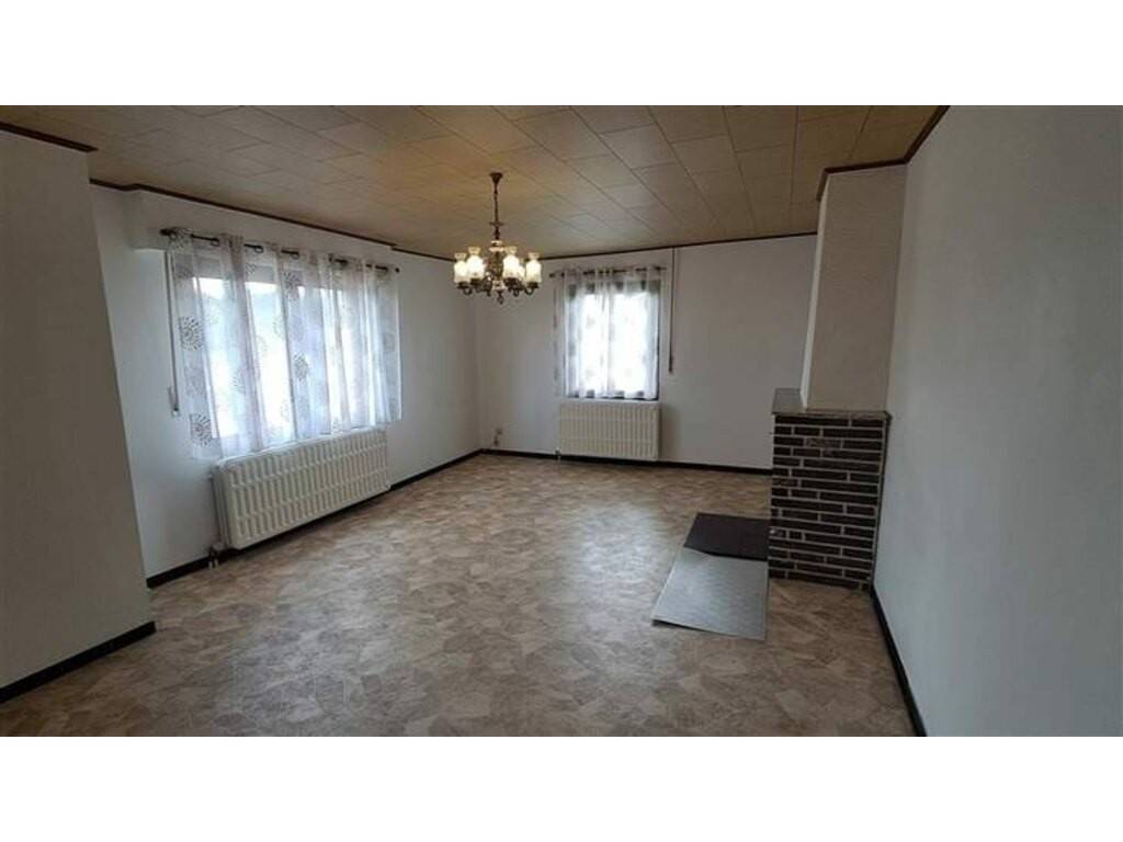 - OPTION - Maison de plain-pied située à Regné sur un vaste terrain de 3220 m² comprenant: cuisine, salle à manger - salon, hall de nuit, wc indépendant, salle de bains, 2 chambres et garage. Châssis en bois double vitrage, chauffage central au mazout. Sale Details - Honoraires à la charge: Non communiqué