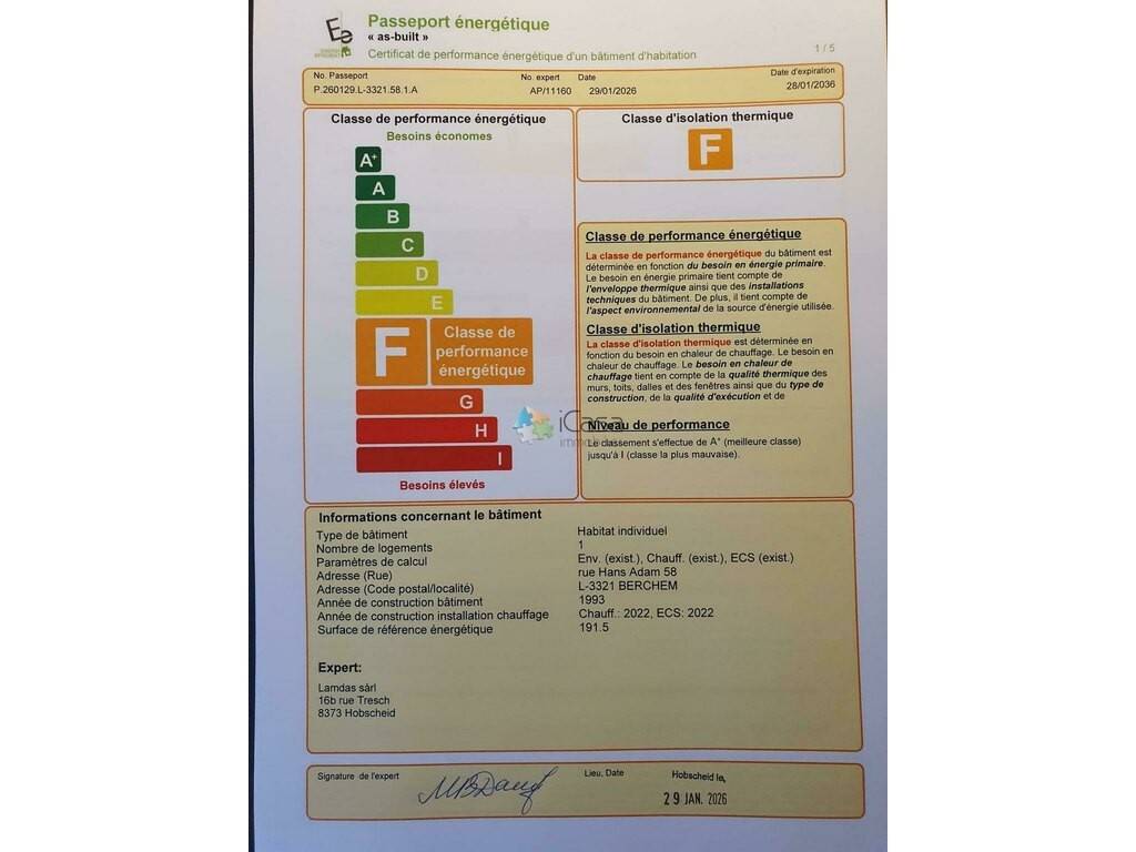 Agence iCasa Bertrange BELACCHI Michel Sale Details - Honoraires à la charge: Non communiqué - Isolation thermique: F - Surface du terrain: 2 ares Reference agence: E3P:20296-5270700