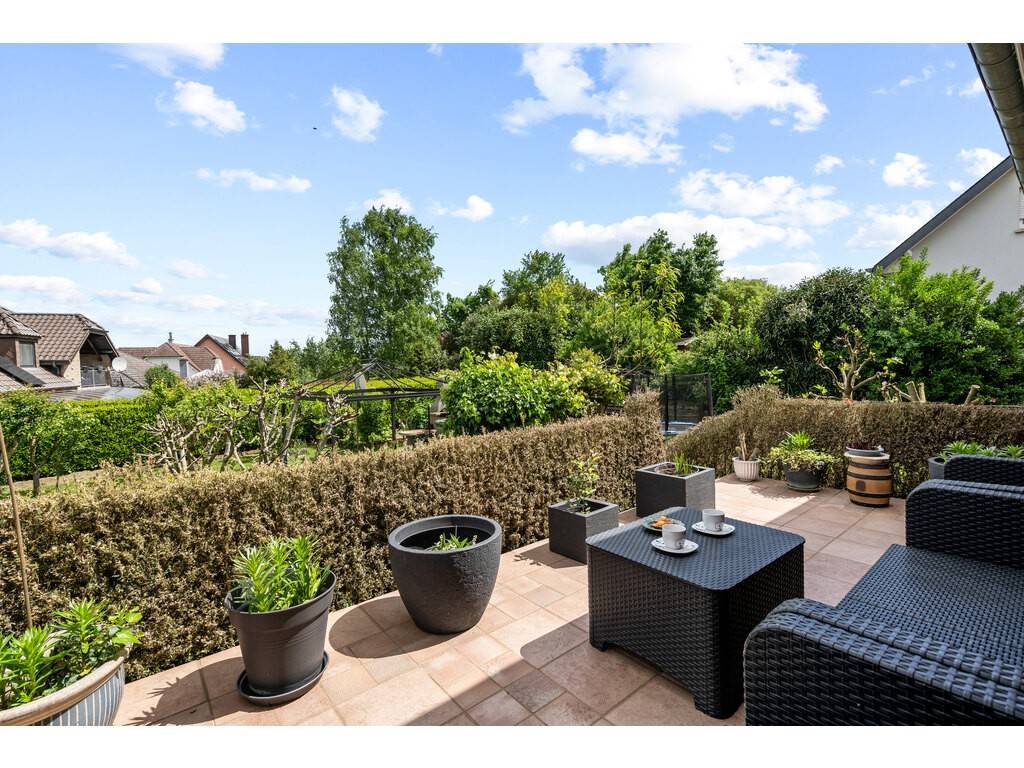 - Accès direct à une terrasse exceptionnelle de +/- 20m², idéale pour les repas en extérieur, donnant sur un jardin privatif de 400 m², exposé plein sud-