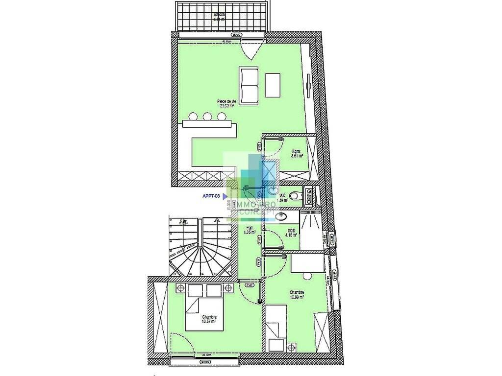 - Un balcon pour profiter des beaux jours en extérieur. - Deux chambres - Une salle de douche et un WC séparé pour plus de commodité. - Un débarras pratique et une cave pour optimiser le rangement.