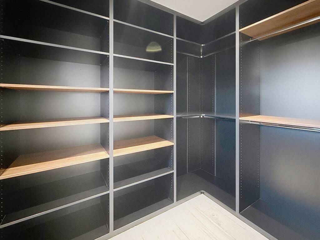 Dès l’entrée, la hauteur sous plafond, les rangements intégrés sur mesure et la circulation fluide donnent le ton d’une maison conçue avec exigence.
