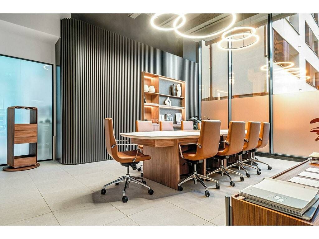 Technical Specifications • Air conditioning: Reversible ceiling-mounted system (heating and cooling) • Heating system: Central • Layout: Partitioned and furnished • Lighting: Recessed and suspended luminaires • Ceiling: Partial suspended ceiling • IT infrastructure: Structured IT cabling and dedicated IT room • Flooring: Carpet tiles and tiled flooring • Windows: Double glazing • Security: Fire detection system and controlled access • Common areas: Meeting rooms