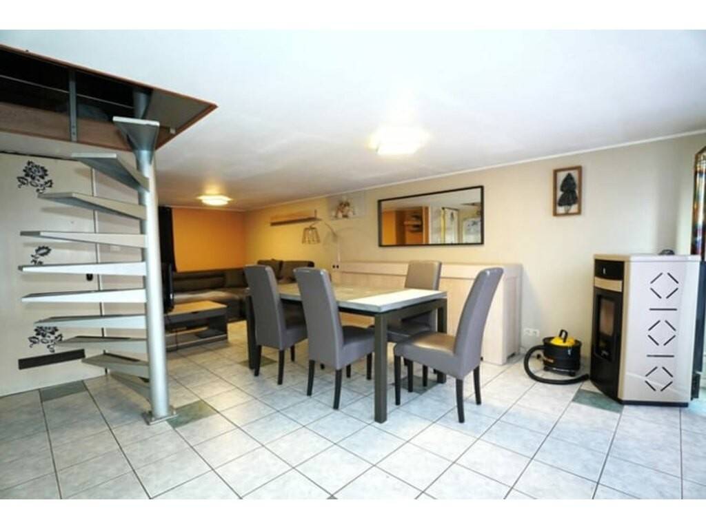 Au rez-de-chaussée, le bien se compose d’un hall d’entrée, d’une buanderie avec les accès pour machine à laver, d’une salle de bain avec une douche, un lavabo et un WC, une belle cuisine équipée et un grand et lumineux séjour comportant un poêle à pellets, l'accès direct à la terrasse à l’avant se fait par une nouvelle porte-fenêtre coulissante.
