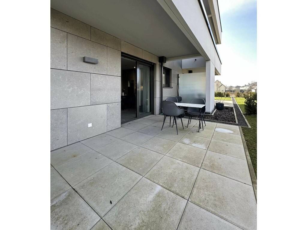The Violette residence is located on a quiet, residential street in Strassen, close to all amenities, offering high-end features and an AAA energy rating. The ground-floor apartment has a living area of 63.5 m² and comprises: an entrance hall with large, high-quality, custom-made closets; a bright living room with an open-plan kitchen leading to the terrace and garden (exclusive use); a bedroom with custom-made closets; a shower room with toilet; a storage room; and a separate toilet. In the basement, there is an indoor parking space, a private cellar, and a shared laundry room. Features include triple glazing and a double-flow ventilation system. A two-month rental guarantee (excluding charges) is required. The letting commission of one (1) month's rent plus 17% VAT will be shared between the landlord and tenant. Availability: 01.04.2026. Sale Details: - Agency fees: Not disclosed - Monthly charges: €220.00 - Security deposit: €4200.00 - Thermal insulation: A - Agency reference: APM:11195573-85607042