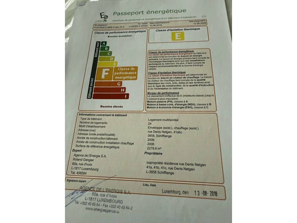 L'Immobilière Romain Thill sàrl avec une expérience de 50 ans, Membre de la Chambre Immobilière du Luxembourg à sélectionné pour vous: Un appartement de 65 m2 dans un immeuble bien entretenu, construction 2006,au 3eme étage, avec ascenseur, d'un bâtiment de 8 unités dans un environnement calme et verdoyant.A SCHIFFLANGE Il se compose : D'un hall d'entrée distribuant une première chambre d'enfant ou bureau, un débarras, une pièce à vivre lumineuse avec cuisine équipée, une seconde chambre, une salle de bains avec WC. Une cave, une buanderie commune, un emplacement extérieur complètent ce bien. Pas de travaux à prévoir . L'Immobilière Romain Thill sàrl, est à votre disposition pour toutes vos recherches ainsi que pour vos transactions LOCATION et VENTE au Luxembourg, en France et en Belgique du lundi au vendredi de 10h à 13h et de 14h à 20h et le samedi sur rendez vous seulement. Sale Details - Honoraires à la charge: Non communiqué - Charges mensuelles: 250.00 € - Isolation thermique: E