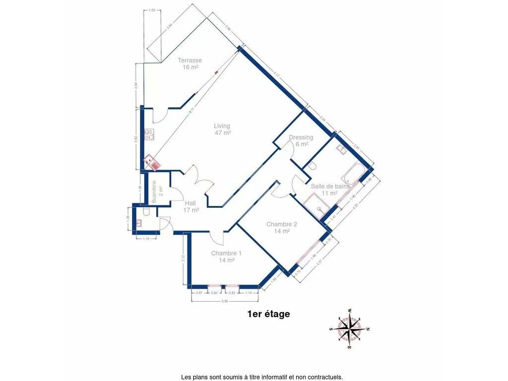 Built in 2008, this spacious 2-bedroom apartment features a 47m² living room/kitchen opening onto a large 16m² southwest-facing terrace. The parquet flooring reflects the quality of the property. Recessed spotlights in the ceiling provide well-distributed lighting. Furthermore, all the shutters are electric. The bathroom offers a choice of bath or shower options, as well as a separate toilet. The sleeping area comprises two large bedrooms and a separate dressing room. Conveniently, there's no need to use a shared laundry room; everything is located within the apartment. A separate toilet is also available for guests. This property includes a cellar, an indoor parking space, and an outdoor parking spot. Don't wait any longer, contact us to seize this opportunity!