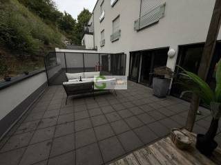 A large open-plan living room-dining room-kitchen area opening onto a very large terrace; two bedrooms, one with a dressing room; separate toilet; shower room (toilet, sink, walk-in shower).
