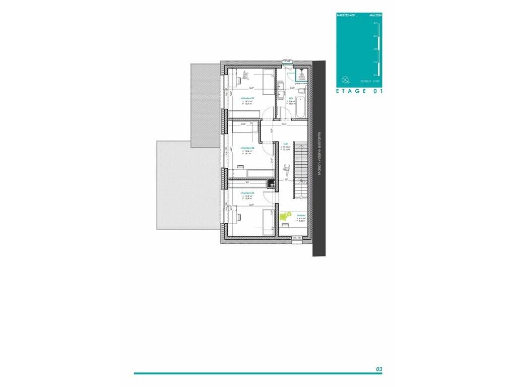 - garage for 1 car and outdoor parking space for 2 cars - large living room with kitchen opening onto 19.21m2 terrace - storeroom - storeroom - private WC