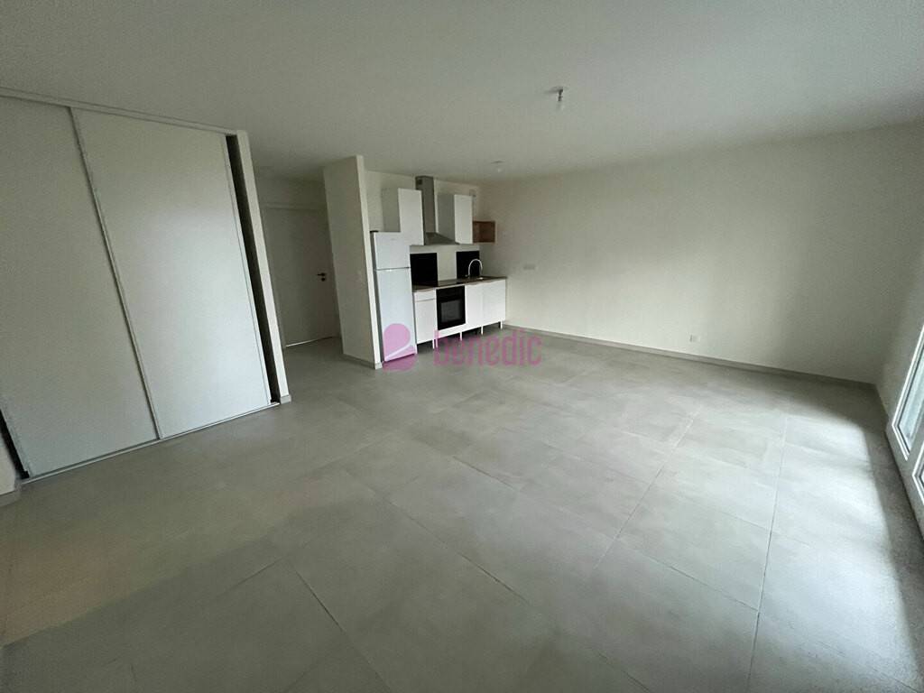 l'espace de jour est ouvert sur sa cuisine équipée et donne accès à une terrasse.