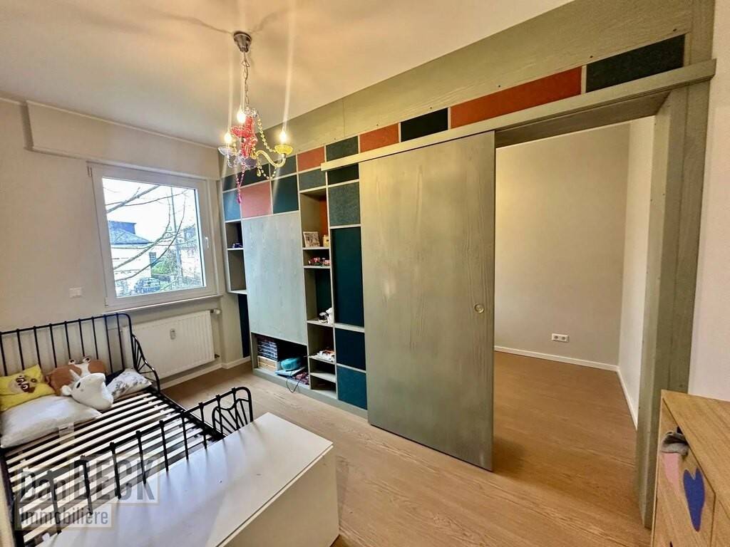 For rent, superb 89 m2 2-bedroom apartment, partially furnished, on 1st floor with 2 balconies and indoor parking space in Bertrange, 8 min walk from City Concorde. The apartment was partially renovated in 2024, especially the interior woodwork (kitchen, cupboards, storage...).