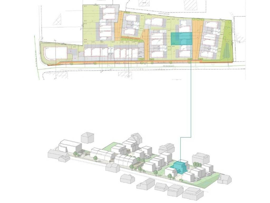 La maison se compose comme suit: – Au rez-de-chaussée: hall d'entrée, cuisine ouverte sur séjour/salle à manger avec accès à la terrasse et au jardin, réserve, WC séparé, garage pour deux voitures – Au 1ère étage : hall de nuit, 4 chambres à coucher une salle de bain, WC séparés - Au 2ème étage : suite parentale avec coin dressing et salle de douche privative, local technique/buanderie