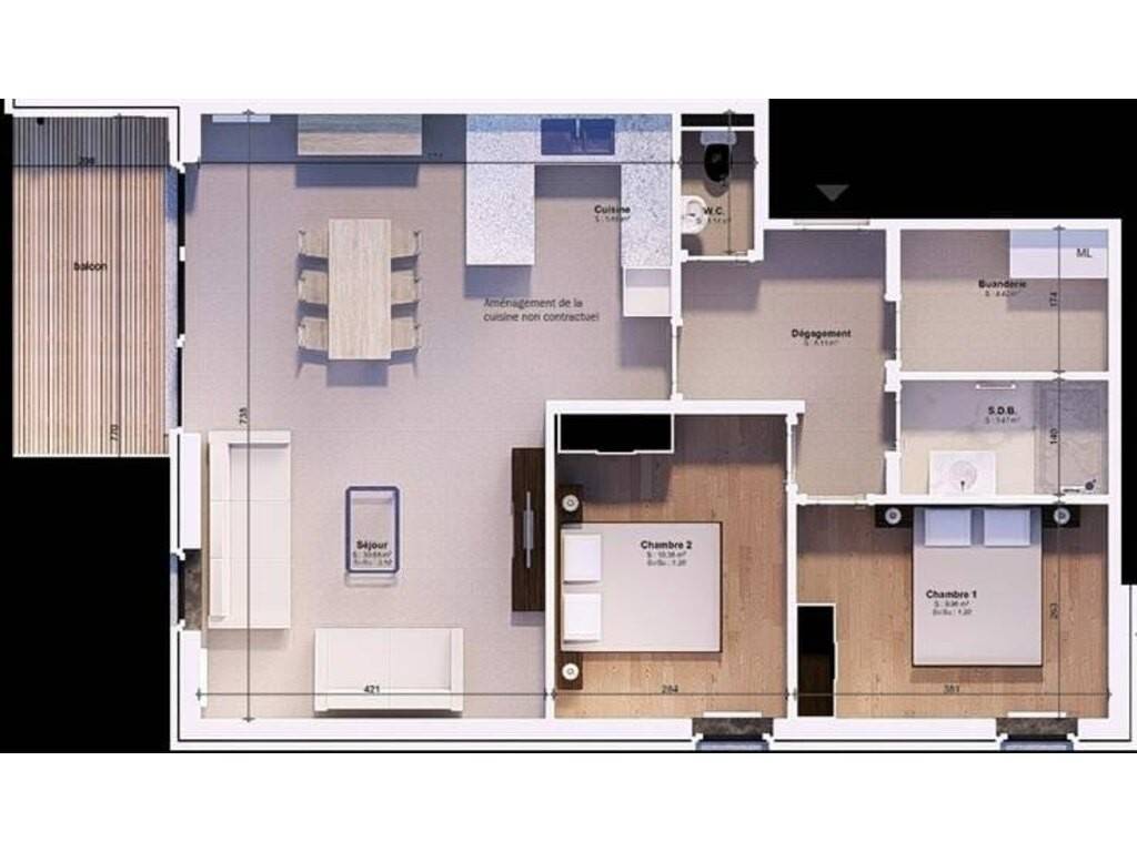 Découvrez cet appartement d'environ 80m² situé à Jambes, au cœur d’un quartier neuf en plein développement et à proximité des facilités (grands axes, transports en commun, ...). Situé au 2ième étage d'une petite résidence comprenant 10 appartements, il offre : 1 hall d'entrée, 1 buanderie, 1 wc indépendant, 1 séjour avec cuisine américaine ( +/- 36.3m²), 2 chambres (+/- 10m²) et 1 salle de douches. Balcon privatif orienté sud-est. Éléments de confort : PEB A, chaudière individuelle au gaz de ville, panneaux photovoltaïques, ventilation simple flux, etc. Possibilité d’acquérir un emplacement de parking extérieur ou sous carport moyennant supplément. Livraison prévue dans les 2 ans suivants le début de la construction. Faire offre à partir de 350.000euros Vente sous régime TVA à 6%, sous conditions. Sale Details - Honoraires à la charge: Non communiqué