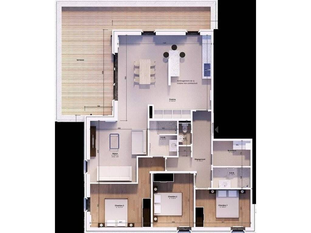 Découvrez cet appartement d'environ 115m² situé à Jambes, au cœur d’un quartier neuf en plein développement et à proximité des facilités (grands axes, transports en commun, ...). Situé au 3ième étage d'une petite résidence comprenant 10 appartements, il offre : 1 hall d'entrée, 1 buanderie, 1 wc indépendant, 1 séjour avec cuisine américaine ( +/- 51.5m²), 3 chambres (+/- 15m², +/- 10.5m² et +/- 10m²) et 2 salle de douches. 2 grandes terrasses orientées sud-est d'une superficie totale de 42m². Éléments de confort : PEB A, chaudière individuelle au gaz de ville, panneaux photovoltaïques, ventilation simple flux, etc. Possibilité d’acquérir un emplacement de parking extérieur ou sous carport moyennant supplément. Livraison prévue dans les 2 ans suivants le début de la construction. Faire offre à partir de 491.000euros. Vente sous régime TVA à 6%, sous conditions. Sale Details - Honoraires à la charge: Non communiqué
