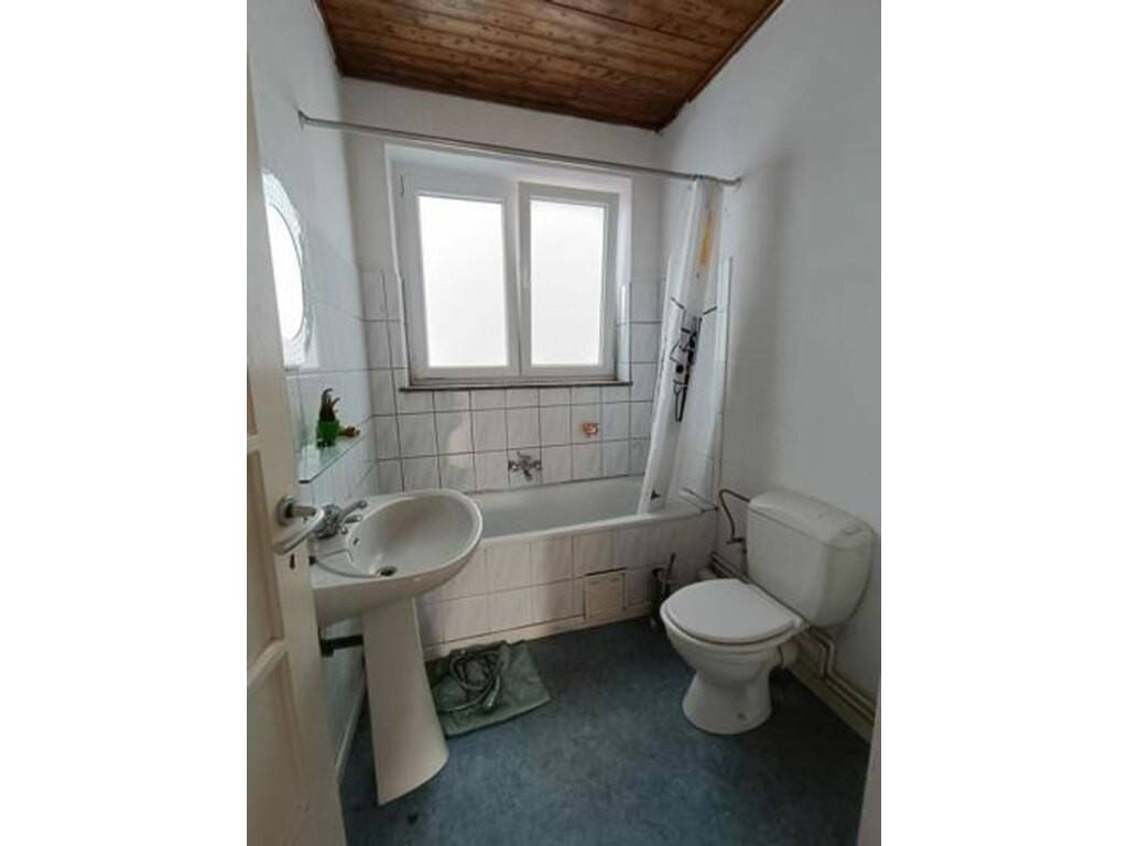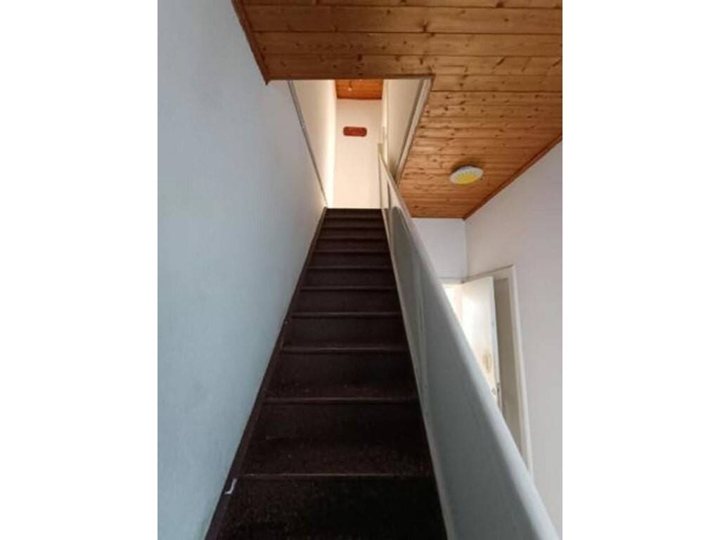 Elle se compose comme suit: RDC: un couloir d'entrée avec WC et accès caves, vaste séjour-salle à manger et cuisine (évier, taque et four électrique). 1er: hall de nuit, 2 grandes chambres, 1 bureau et salle de bain (évier, baignoire et WC). S-Sol: 3 grandes caves saines. Extérieur: Jardin de 50 m² environ avec terrasse, exposition sud-ouest.