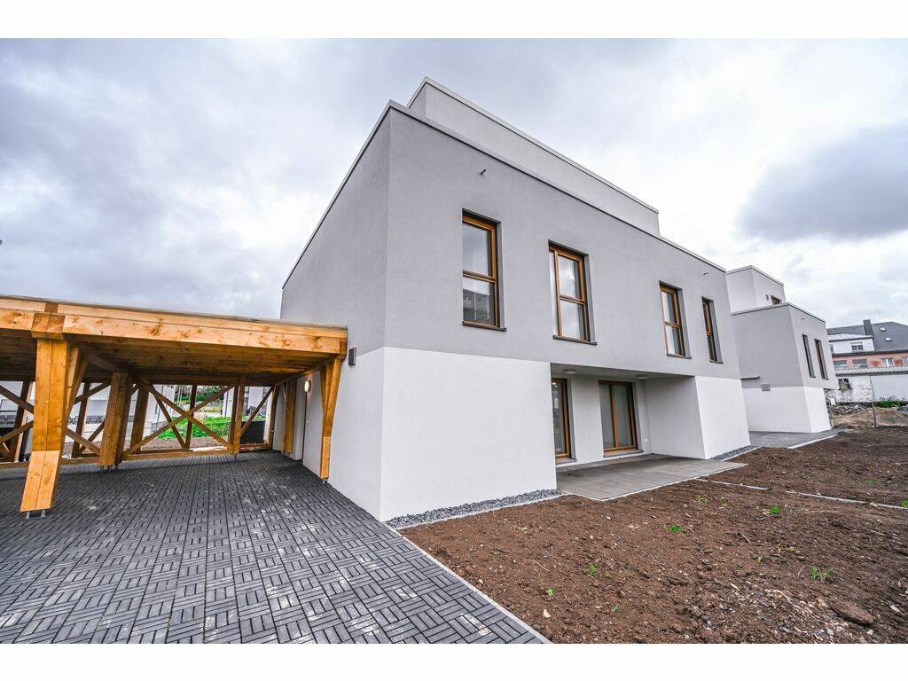 Maison en vente abordable d’une surface de 138,13m2, nouvelle construction de 2024, sur un terrain de 4,29 are, comprenant 4 ch-à-c, 2 salles de bains, WC séparé, cuisine non équipée ouverte sur séjour, terrasse de 21,51m2, jardin privatif de 267 m2 et 1 carport.