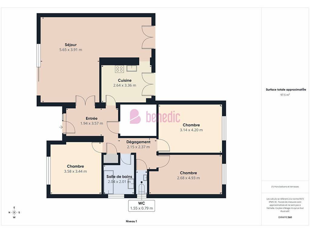 Édifiée de plain-pied, elle développe 101 m² habitables et se compose d'une entrée, d'un dégagement, d'un séjour double lumineux, d'une cuisine, ainsi que de trois chambres offrant de beaux volumes.