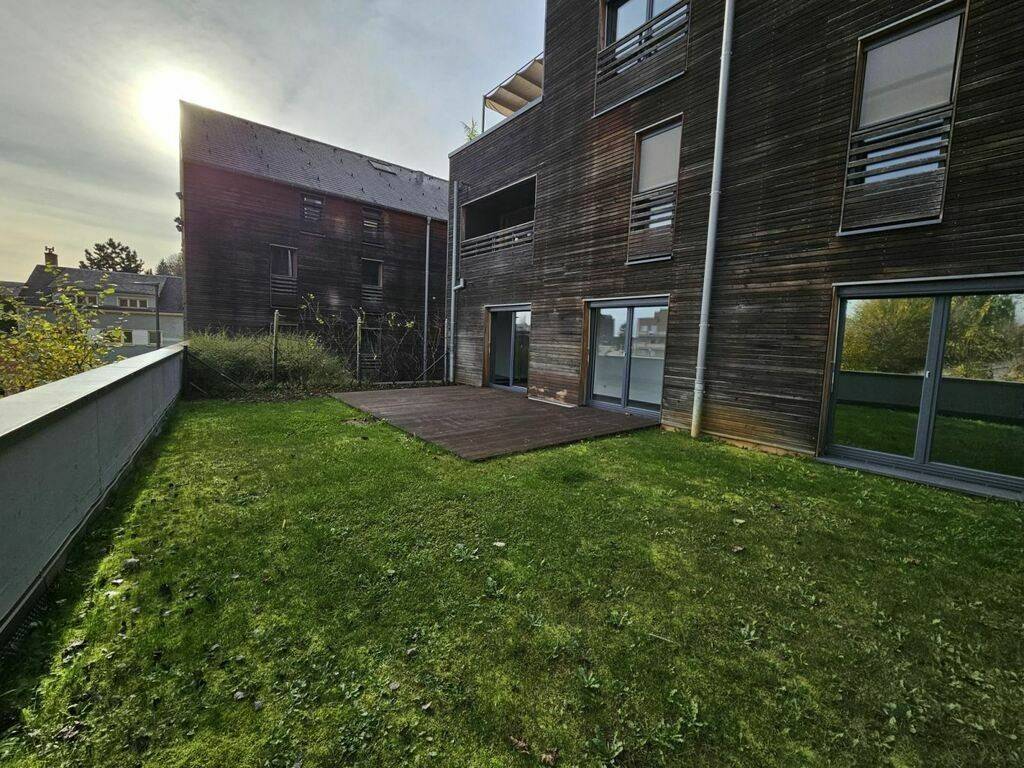 Appartement en vente abordable d'une surface de 93.40 m2, au 1èr étage d'une résidence de 2017, comprenant 2 ch-à-c, une cuisine équipée ouverte sur séjour, une terrasse, un jardin de 52 m2, une cave et un emplacement intérieur.