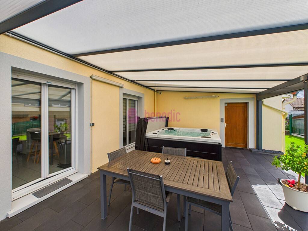Séjour et cuisine sont en lien direct avec la vaste terrasse couverte. Agrémentée d'un spa, elle permet la création d'une ambiance intimiste où il fera bon vous prélasser.