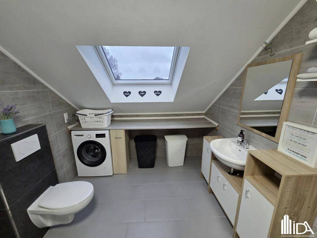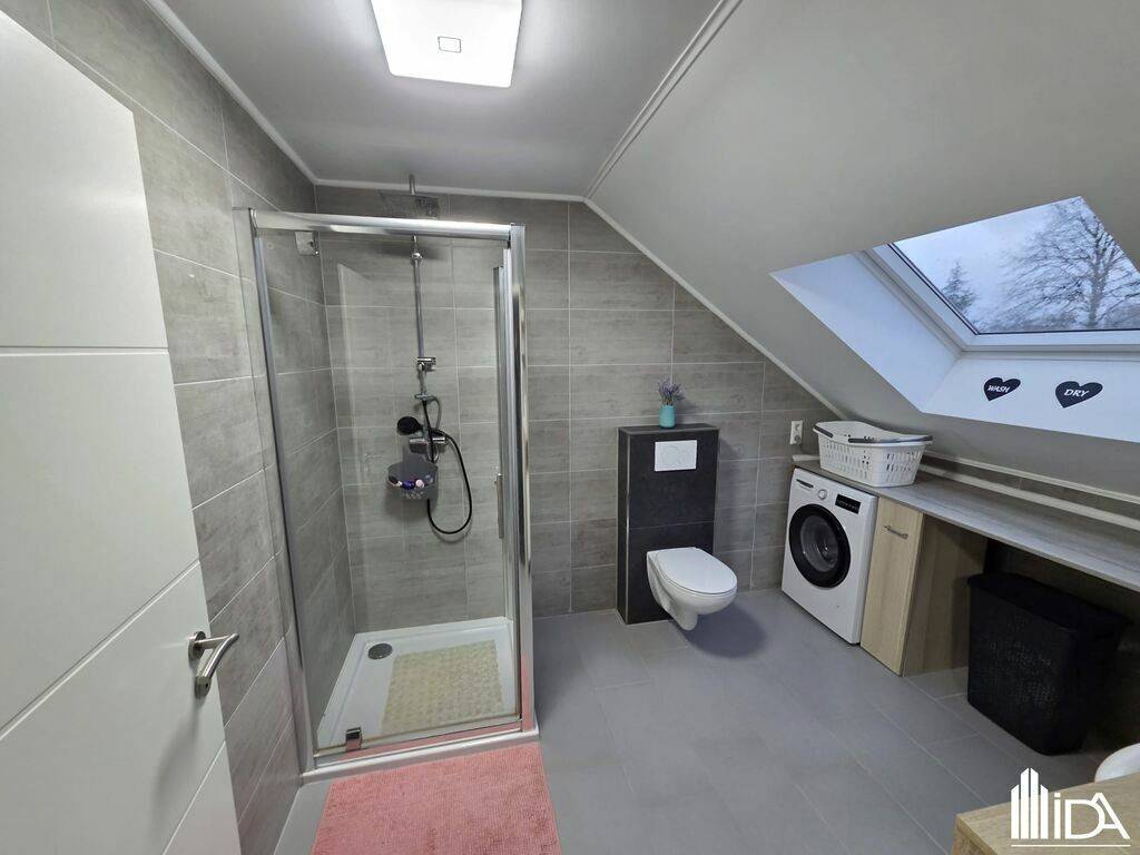 2ème étage: - hall de nuit avec bureau - 2 chambres à coucher - salle de douche, lavabo, wc et connexion lave-linge - débarras et chaufferie.