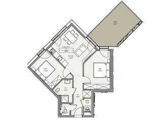 Apartment A.01.1 comprises an entrance hall with checkroom, a kitchen opening onto the living room and a magnificent terrace of over 19m2, two bedroom and a shower room.