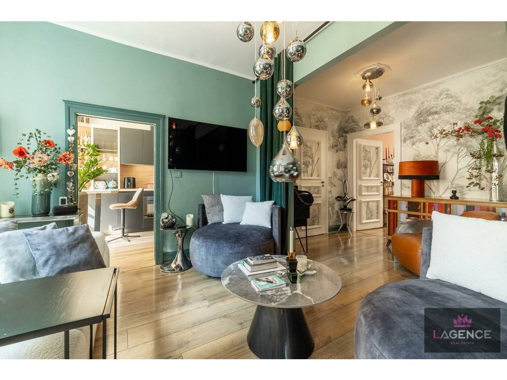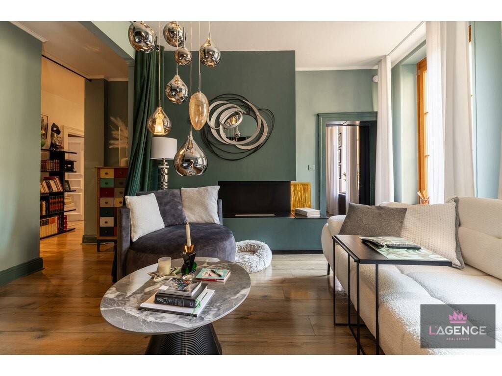 L'Agence Real Estate vous propose en exclusivité ce très bel appartement de caractère d'une superficie de +/- 103m², entièrement rénové en 2022 (sols, fenêtres en double vitrage phonique, tuyauteries chauffages et radiateurs, chaudière, salle de bain, cuisine équipée, cheminée autonome connectée à l'éthanol - modèle Planika 1000).
