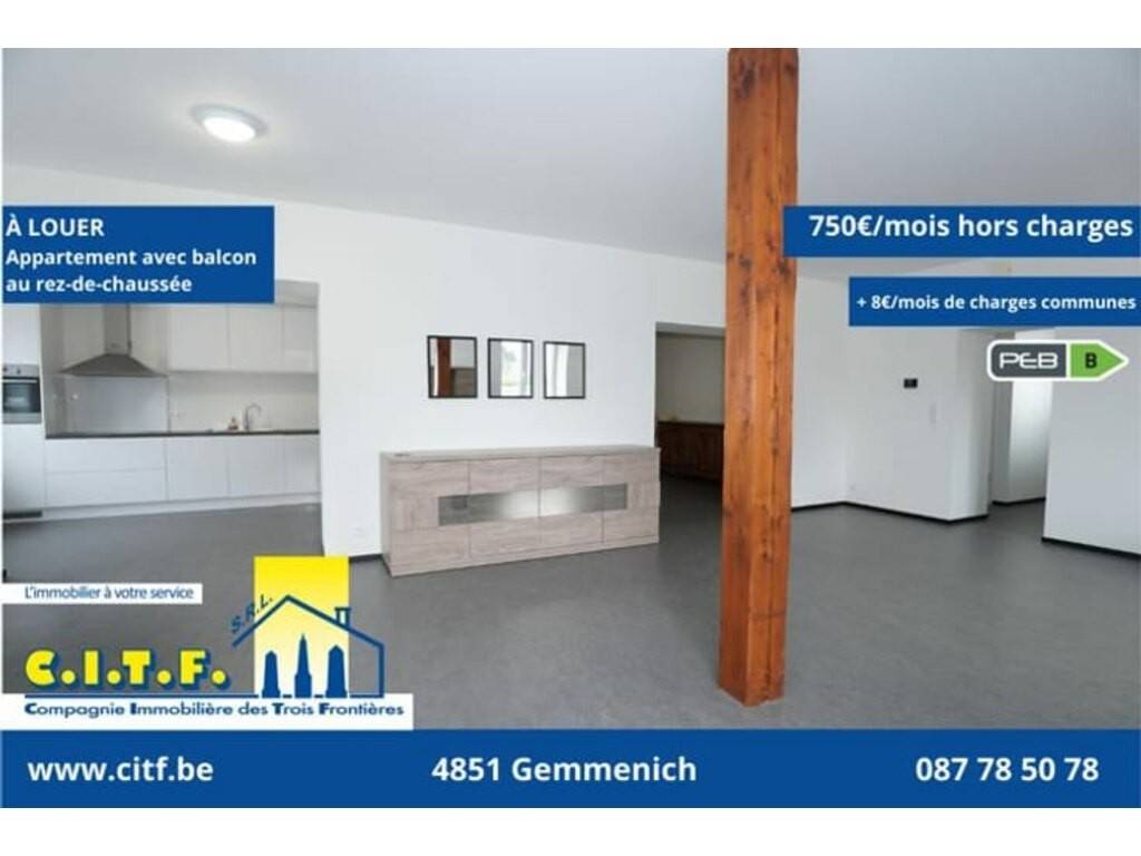 Superbe appartement lumineux avec balcon à louer au rez-de-chaussée de l'immeuble sis rue César Franck 53 à 4851 Gemmenich.