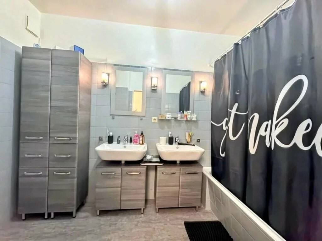 Cet appartement se compose d'un hall d'entrée, cuisine équipée séparée avec sortie sur balcon, lumineuse salle à manger et salon, salle de douche, WC séparé, 2 grandes chambres à coucher, cave, buanderie et garage box fermé.