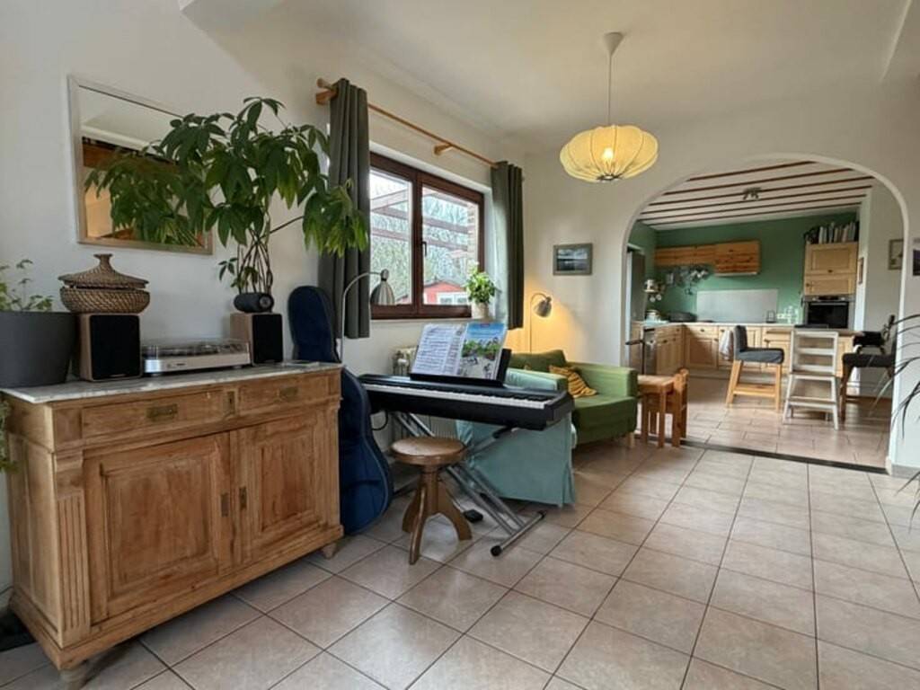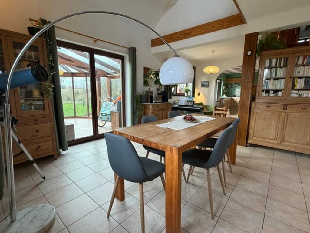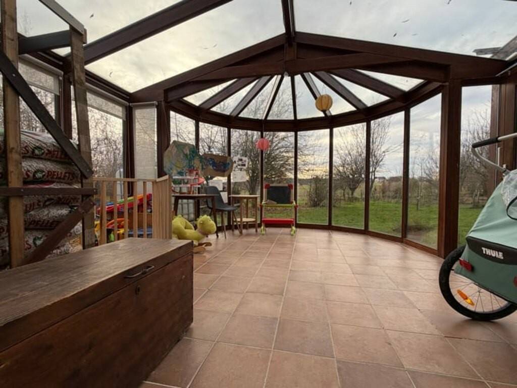 MS-IMMO, concept à 1% de commission vous présente cette maison 4 façades idéalement située dans le charmant village de Haillot, sur une superbe parcelle de 16 ares 49 ca parfaitement orientée sud-ouest. Maison idéale pour une famille souhaitant s’installer dans une spacieuse habitation ne nécessitant pas de travaux, dans un cadre privilégié à la campagne. Composition • Beau hall d’entrée • Salon • Salle à manger • Cuisine équipée ouverte avec coin à déjeuner • Salle de bain au rez-de-chaussée • 3 chambres • Grande mezzanine polyvalente (bureau, salle de jeux ou 4ᵉ chambre) • Salle de douche attenante à une chambre de l’étage • Buanderie • Garage avec porte automatique • Véranda