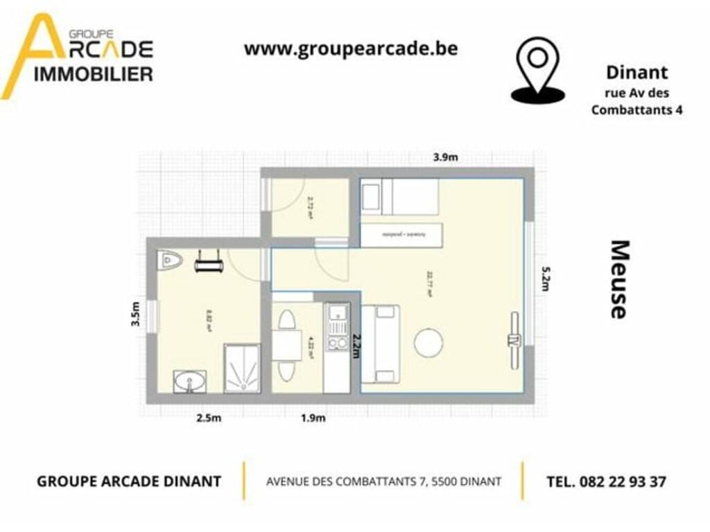 Groupe Arcade Dinant vous propose de faire offre à partir de 98.000€ pour ce studio rénové en majeure partie et situé en plein cœur de Dinant offrant une vue extraordinaire sur la collégiale, la citadelle et la vallée de Meuse. Celui-ci se trouve au 4ème étage d'un immeuble sans ascenseur et géré par un syndic. Idéal comme 1er investissement (revenu locatif possible 480 à 520€/moi), il se compose d'un hall d'entrée, d'une pièce de vie, un coin cuisine (à équiper), et une salle de douche entièrement remise à neuf avec de nouveaux matériaux, tout cela repartis sur environ 40m². En sous sol: une cave. Eléments techniques : Chauffage central sur chaudière Murale (prévoir raccordement au système en place, nous disposons d'un devis) au gaz de ville, chassis en pvc Dv. Charges de copropriété mensuelles 70, 14€. (syndic, assurances, provision eau) PEB D - ESPEC : 333 kWh/m².an - E-TOTAL : 14 172 kWh/an - n°20250924017175 Sale Details - Honoraires à la charge: Non communiqué